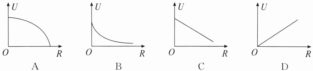 ;利用测得的多组数据,描绘出电压 $ U $ 随电阻 $ R $ 的变化关系图像如下,其中正确的是______B