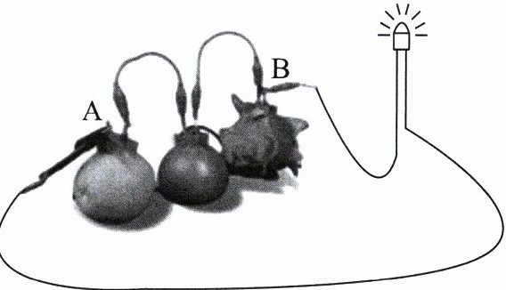 转化为电能。此时二极管能发光,说明水果电池的正极是B