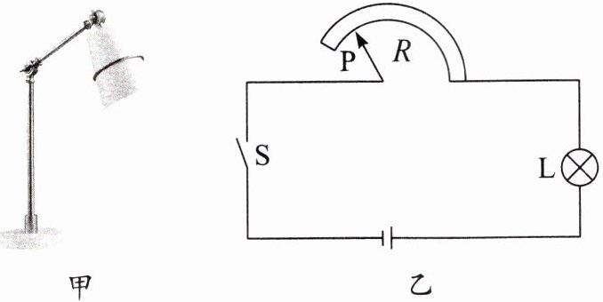 - 典例分析1(2024·重庆中考A卷)图甲是同学们自制的调光小台灯,图乙是台灯的电路原理图。电源电压为3V,R是调节亮度的变阻器接入电路的阻值,其最大阻值为10Ω。灯L标有“2.5V 0.5W”字样。忽略温度对电阻的影响。