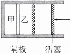 8. (2024·潍坊中考)(多选)如图所示,用气缸、固定隔板和活塞密闭甲、乙两部分气体,气缸和活塞均不导热,隔板导热良好。迅速将活塞向左推至图中虚线位置并固定,静置一段时间。下列说法正确的是(