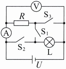)A.只闭合$S_1$,阻值为$R的电阻器与灯泡L$并联