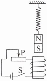 3. 如图所示,在电磁铁上方用弹簧悬挂一根条形磁体,闭合开关,在将滑动变阻器的滑片P从右向左滑动的过程中,弹簧将(
