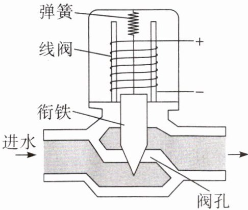 (填方向)的力,使衔铁移动,阀孔打开,水流进洗衣机。