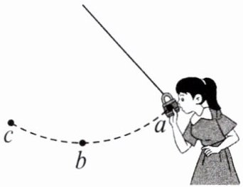 8. 用绳子把一个铁锁悬挂起来,把铁锁拉到刚好贴着自己的鼻子,稳定后松手,头不动,如图所示。铁锁由开始位置a沿弧线abc向另一侧的最高点c运动,然后再从c往回运动。