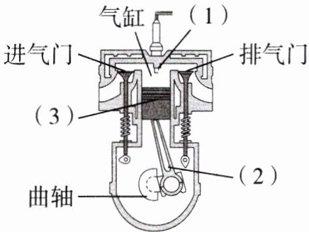1. 右图是四冲程汽油机剖面图。其中,(1)是