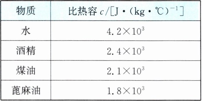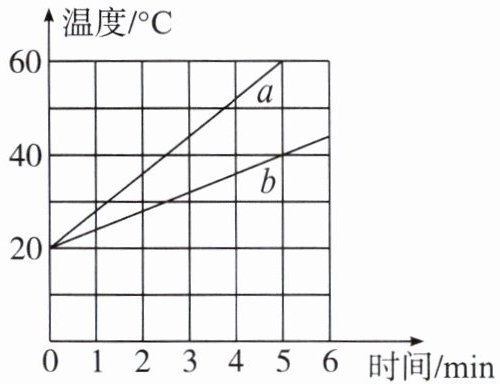 8. (2024·山东烟台中考)在探究物质的吸热情况与哪些因素有关的实验中,用质量是$ 0.3kg $的水和表中等质量的另一种物质进行对比,作出的图像如图所示。实验过程中,水和另一种物质在相同时间内吸收的热量相等,分析图像可以得出图线______(选填“a”或“b”)对应的物质为水,另一种物质为______,这种物质在$ 0~5min $内吸收的热量为______$ J $。