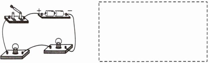 8. 根据如图所示的实物连接图,在虚线框内画出对应的电路图,并在电路图上标明开关闭合时电路中的电流方向。