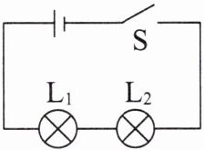 状态。(2)连接好电路,闭合开关 $ S $,小惠发现两个灯泡都不亮,她用手按一下灯泡 $ L_1 $,仍然都不亮,按一下灯泡 $ L_2 $,两灯都亮,松手后两灯又都不亮,则故障可能是