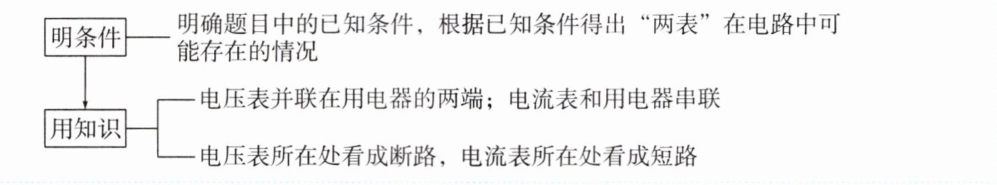 明条件:明确题目中的已知条件,根据已知条件得出“两表”在电路中可能存在的情况