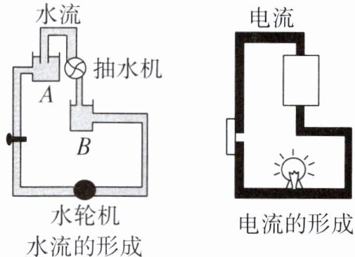 )A.水压使水管中形成水流;类似地,电压使电路中形成电流