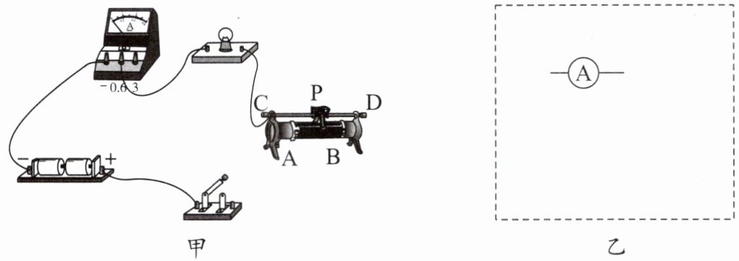 (1)要求滑动变阻器向左移动时能使灯亮度变暗。请用笔画线表示导线连接图甲实物图,并在图乙虚线框中画出相应的电路图。