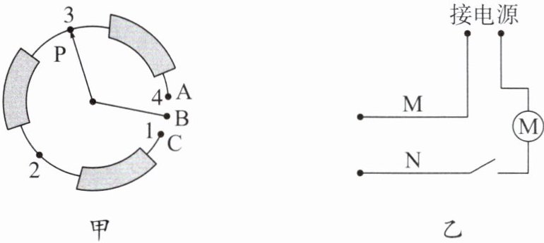 8. 图甲为某种电风扇调速器的示意图,P为旋钮的滑片,可通过转动旋钮改变挡位。调速器应与电动机