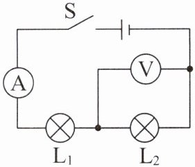 4. 如图所示的电路中,闭合开关 $ S $ 后,灯泡 $ L_1 $、$ L_2 $ 都发光,一段时间后,$ L_1 $ 突然熄灭,发现其中一个电表示数增大,另一个电表示数减小。用一个检验灯并联在 $ L_2 $ 两端,$ L_1 $ 和检验灯发光。若电路中只有一处故障,则产生这一现象的原因可能是(