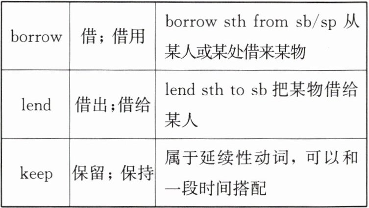 |lend|借出;借给|lend sth to sb 把某物借给某人|