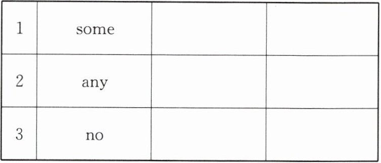 1. someone/somebody, something 2. anyone/anybody, anything 3. nobody, nothing