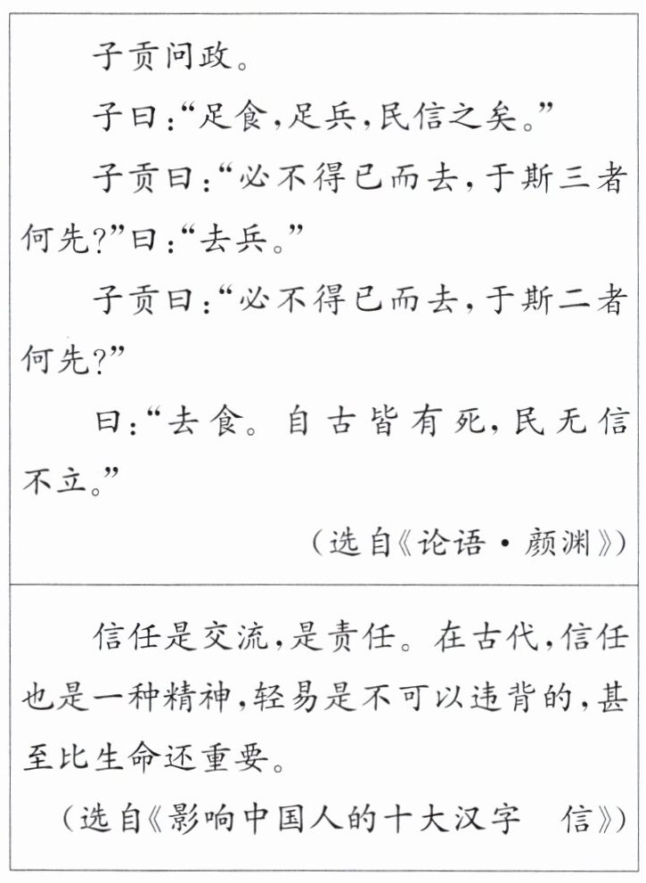 3. 同学们围绕“人无信不立”展开专题探究。结合下面的材料,写出你探究的结果。