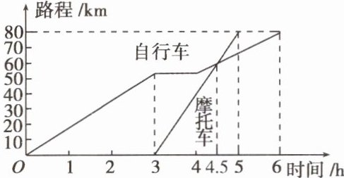 )A.骑自行车者比骑摩托车者早出发 3 h,早到 1 h