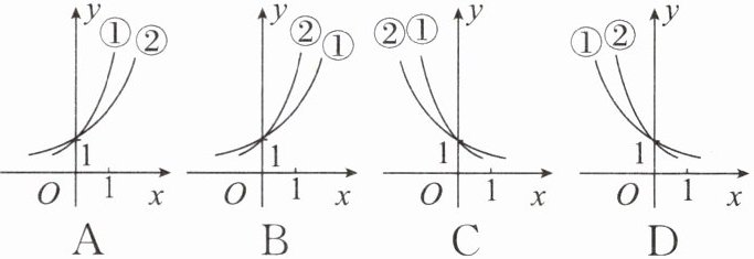 2. 若 $ 1 > n > m > 0 $,则指数函数① $ y = m^x $,② $ y = n^x $ 的图象为 (