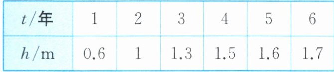 6. 某人对东北一种松树的生长进行了研究,收集了其高度 $ h $(单位:m)与生长时间 $ t $(单位:年)的相关数据,从 $ h = mt + b $ 与 $ h = \log_a (t + 1) $ 中选一个来刻画 $ h $ 与 $ t $ 的关系,你认为哪个比较合适?请预测第 8 年的松树高度。