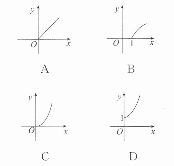 7. 某地为加强环境保护,决定使每年的绿地面积比上一年增长 10%,那么从今年起,$ x $ 年后绿地面积是今年的 $ y $ 倍,则函数 $ y = f(x) $ 的大致图象是 (