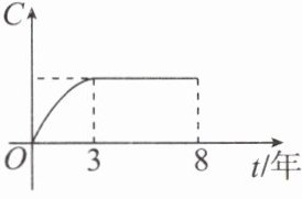 4. 某工厂 8 年来某种产品的总产量 $ C $ 与时间 $ t $(单位:年)的函数关系如图所示。