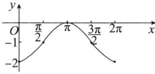 1. 利用“五点法”作出函数 $ y = -1 - \cos x $($ x \in [0, 2\pi] $)的简图。