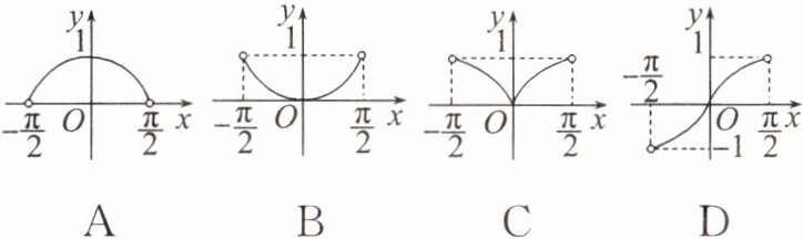 2. 函数 $ y = \cos x |\tan x| $($ -\frac{\pi}{2} < x < \frac{\pi}{2} $)的大致图象是(