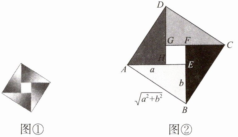 情境:在北京召开的第24届国际数学家大会的会标如图①所示,会标是根据中国古代数学家赵爽的弦图设计的,颜色的明暗使它看上去像一个风车,代表中国人民热情好客。通过模拟图(如图②所示)能够得到不等式$a^{2}+b^{2}\geq2ab$。