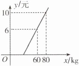 1.某长途汽车客运公司规定旅客可随身携带一定质量的行李.若超过规定的质量,则需购买行李票,行李费用 y(单位:元)是行李质量 x(单位:kg)的一次函数,其图象如图所示.