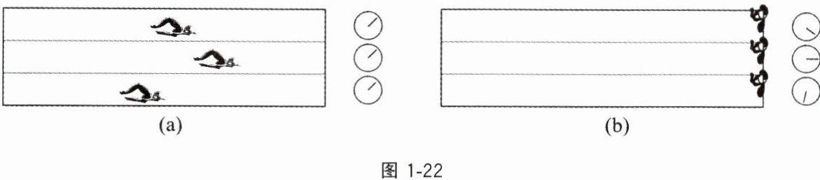 7. 图 1 - 22(a)中比较运动员快慢的方法是: