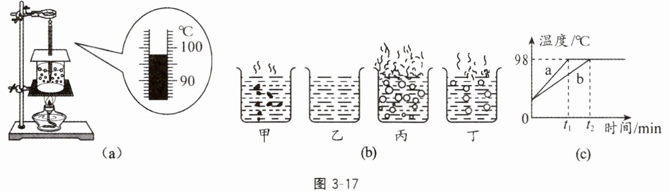 6. 图3 - 17 (a) 是李琳同学在“观察水的沸腾”实验中的情景。