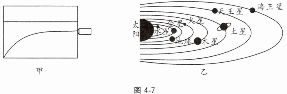 9. 小海在家中做“研究光的传播”实验,在玻璃缸中盛上清水,沿缸壁轻轻注入浓糖水,从侧壁水平照射激光,看到缸内光的路线如图4-7甲所示,当搅拌缸中的水后,再次观察光的传播路径,说明了: