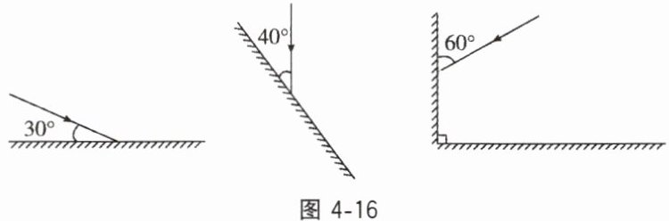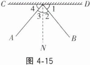 4. 如图4-15所示,CD为竖直挂在墙上的平面镜,位于A处的甲同学通过平面镜看到了位于B处的乙同学。在这一现象中,光的反射角是(