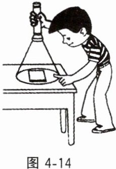3. 如图4-14所示,晚上,在桌子上铺一张白纸,把一小块平面镜镜面朝上放在白纸上,让手电筒的光正对着平面镜照射,从侧面看去,下列说法中正确的是(