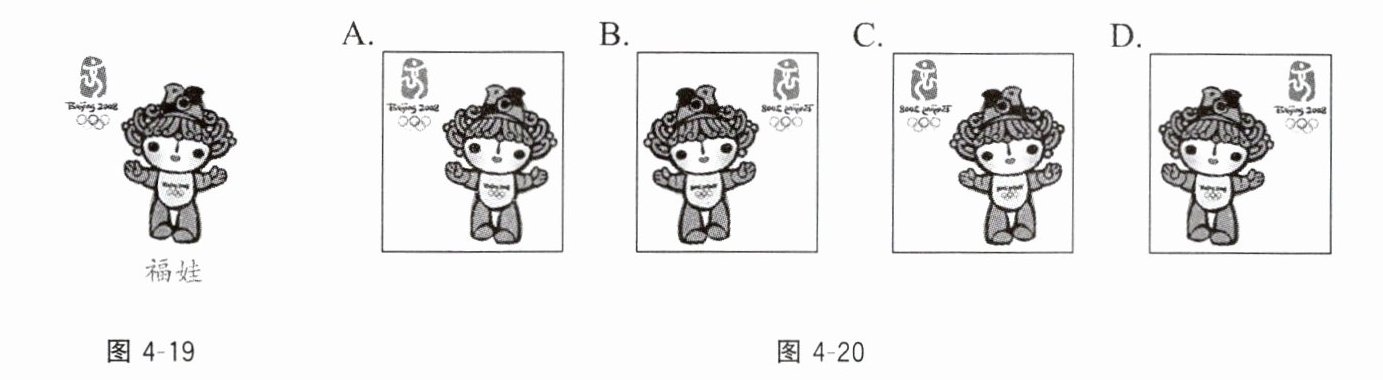 例2 图4-20的四个方框中的图像,其中一个是福娃(图4-19)在竖直放置的平面镜中的像,你认为应当是(