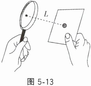 3. 小星同学利用太阳光测量凸透镜的焦距,方法如图5-13所示。他注意到让凸透镜正对阳光,但没有仔细调节纸片与透镜的距离,在纸片上的光斑并不是最小时,就测出了光斑到凸透镜中心的距离L,那么,凸透镜的实际焦距(