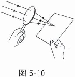 6. 如图5-10所示,小明拿着凸透镜正对着太阳光,在距凸透镜另一侧15cm处的白纸上得到了一个最小最亮的光斑。这个亮斑是该透镜的