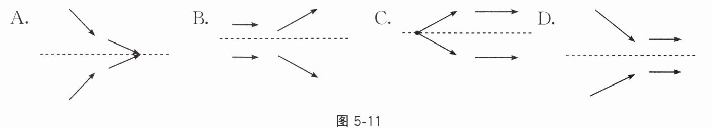 1. 图5-11中画出了光线通过透镜(未画出)的情形,哪个是凸透镜的?(