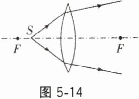 4. 放在凸透镜主光轴上焦点以内的点光源S发出的光,通过凸透镜后的光路如图5-14所示,则下列说法正确的是(