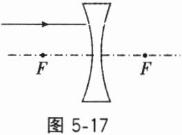 9. 如图5-17所示是一束平行于主光轴并射向凹透镜的入射光线,请画出穿过透镜的折射光线。