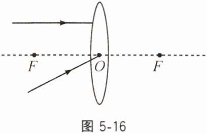 8. 如图5-16所示,O为凸透镜的光心,F为焦点,请将图中两条光线的光路补充完整。