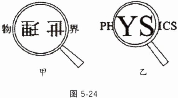 4. 小明用一个透镜观察“物理世界”时观察到如图 5 - 24 甲所示的现象。这个透镜是