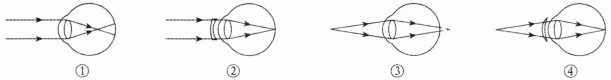 解析 图①是近视眼成像的情况,图②是近视眼矫正的情况,图③是远视眼成像的情况,图④是远视眼矫正的情况。所以答案为A。