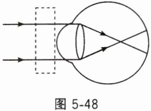 7. 请在如图5-48所示虚线框内填上合适的透镜,对该视力缺陷进行矫正。
