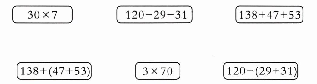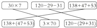 $\boxed{30×7}$ $\boxed{120 - 29 - 31}$ $\boxed{138 + 47 + 53}$