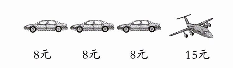(1)3×4+3=15(个)(2)3×8+15=39(元)