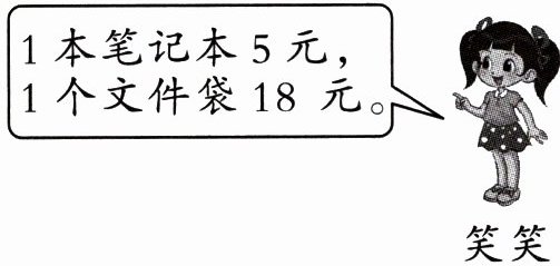 4. 新学期开始,笑笑买了 4 本笔记本和 1 个文件袋,一共花了多少元?