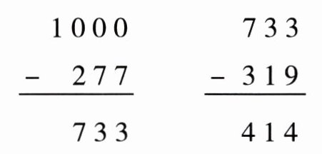 $\begin{array}{r}1000 \\-277 \\\hline733 \\\end{array}\\ $