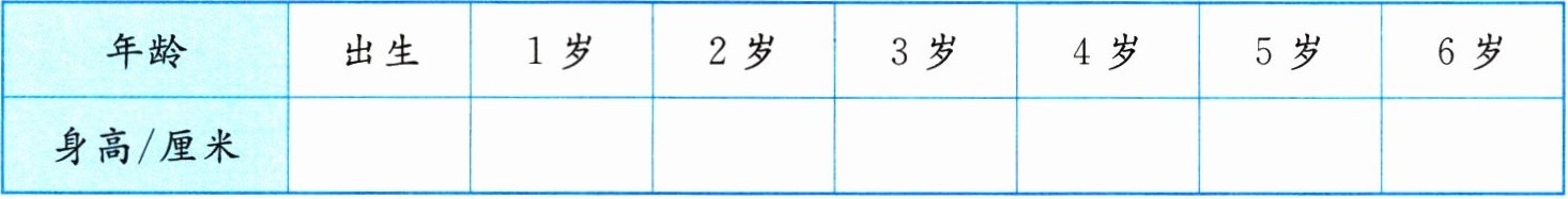 4. (综合与实践) 请了解自己从出生到 6 岁的身高并填写下表。