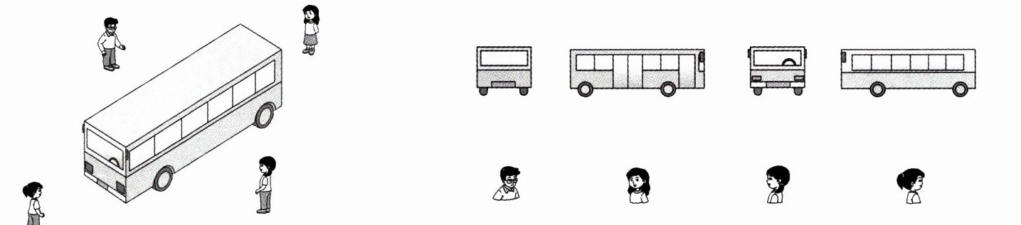4. 下面四幅图分别是谁看到的?想一想,连一连。